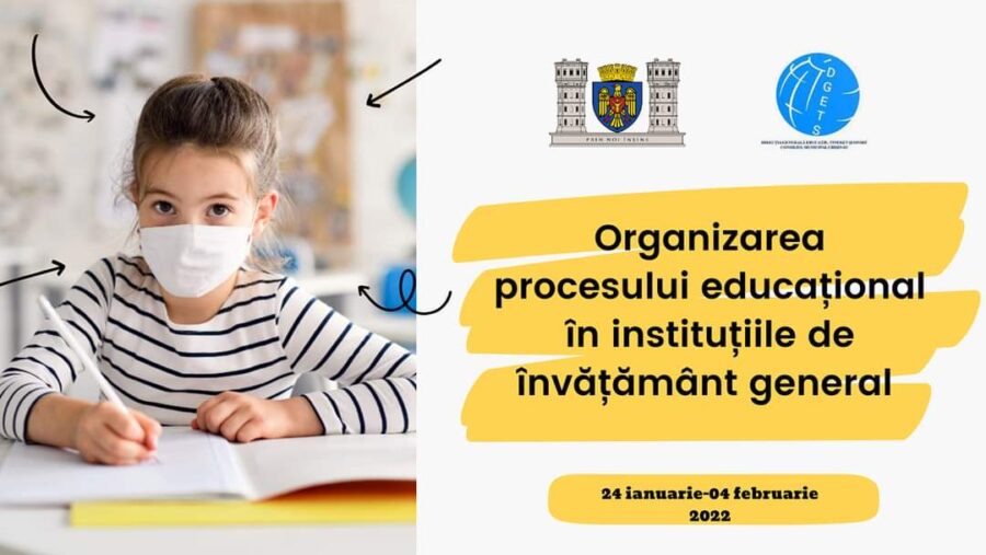 Direcția Generală Educație Tineret și Sport a Consiliului municipal Chișinău vă informează că, începând de luni, 24 ianuarie 2022, pentru perioada 24.01-04.02.2022 procesul educațional în instituțiile de învățământ primar și secundar din municipiul Chișinău pentru elevii din învăţământul primar (clasele a I- IV-a), din învăţământul gimnazial (clasele V- IX-a) şi din învăţământul liceal (clasele a X-XII, XIII) se organizează la distanţă.
